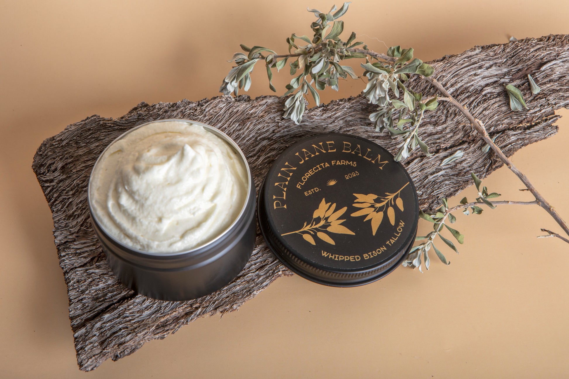 Plain Jane Balm- Our same rich, herb-infused bison tallow balm—but with no essential oils. This formula is perfect for sensitive skin, fragrance-sensitive individuals, or anyone seeking a clean, scent-free option that still delivers intense moisture and nourishment.